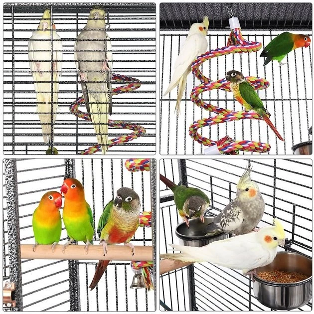 - Spacious cage can easily accommodate several small to medium birds including lovebirds, budgies, cockatiels, green-cheeked conures, sun parakeets and more.