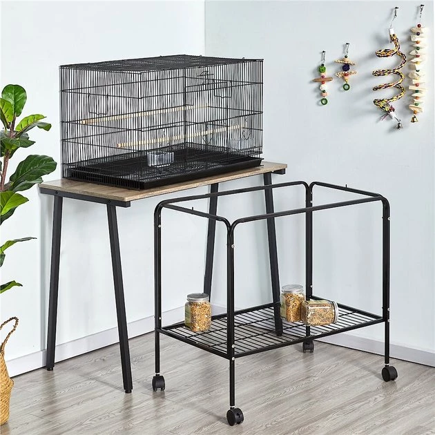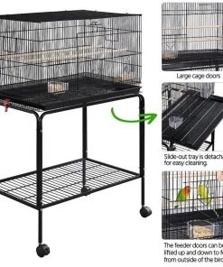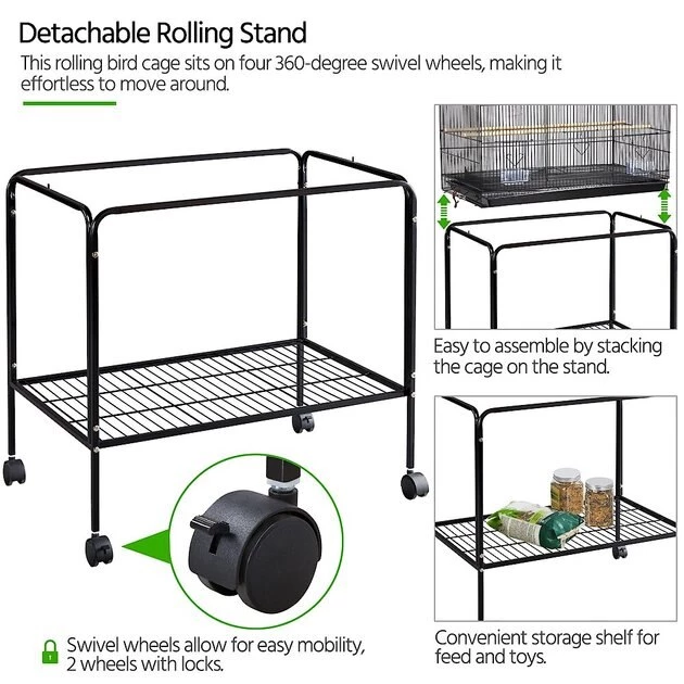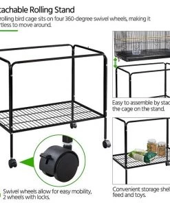 - Rolling casters and safety wheel brakes let you easily move the cage around the house or even outside on nice days!