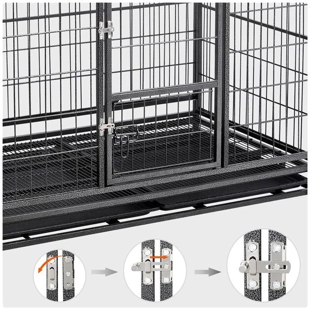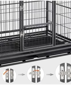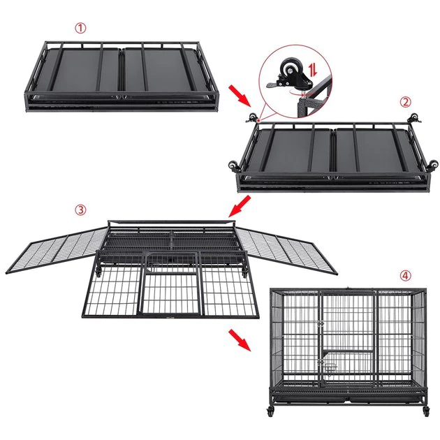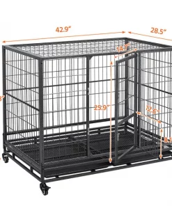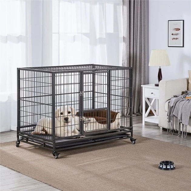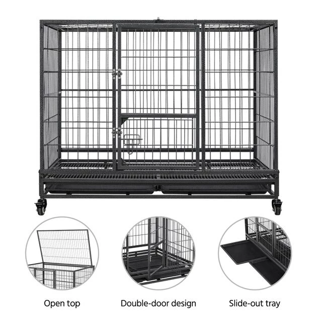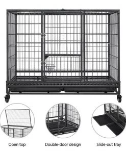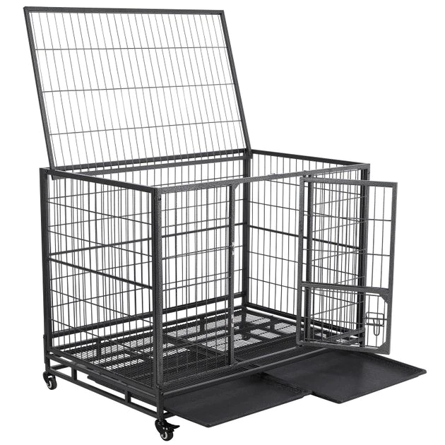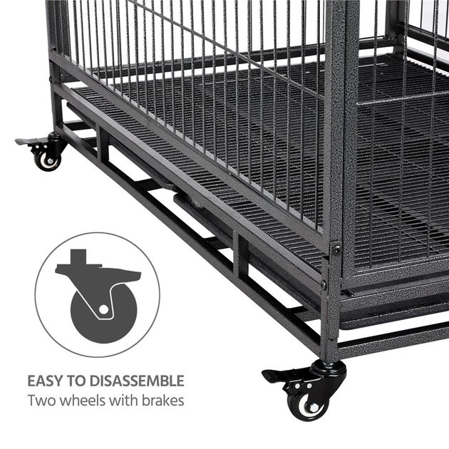 Get clean-up done in a snap with the Wheels & Litter Pans Dog Crate from Yaheetech! Featuring slide-out litter pans and a bottom grate, this convenient dog crate helps make cleaning up quick and easy. Its open top design helps your dog stay cool, calm and collected throughout their time in the crate, and its 360-degree swivel wheels include brakes for easier movement. This crate is even collapsible, allowing for easier transportation and improved versatility.